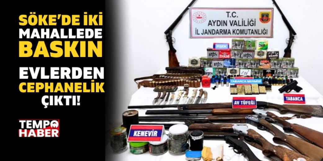 Adreslerde gerçekleştirilen aramalarda, biri seri numarasız olmak üzere çok sayıda silah ve mühimmatın yanı sıra uyuşturucu madde ele geçirildi. Operasyonda 1 adet seri numarasız tabanca, çeşitli çaplarda toplam yüzlerce tabanca mermisi, 7 adet ruhsatsız av tüfeği, çok sayıda av tüfeği fişeği ve 9 adet bıçak bulundu. Ayrıca kubar esrar ve esrar öğütme aparatı da ele geçirilen materyaller arasında yer aldı.